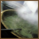 小麦粉で作った土手の中に、温めたハーブオイルを入れて身体の中に薬効をしみ込ませる局所的なトリートメントです。身体の心から温まり、冷えや腰痛の痛みを緩和します。